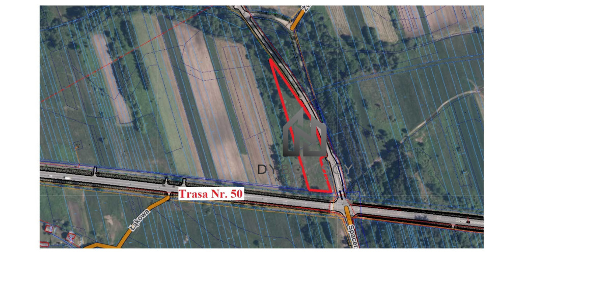 działka narożna, mieszcząca się przy skrzyżowaniu drogi krajowej Nr.50 oraz drogi powiatowej 797.