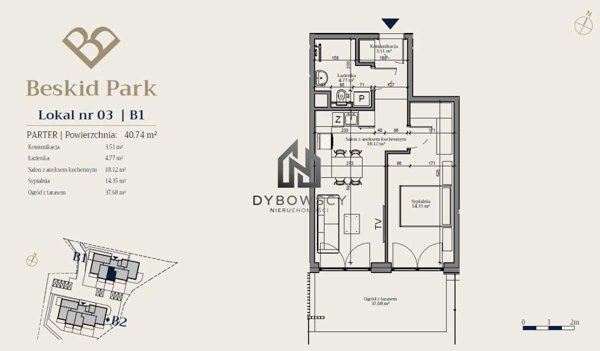 Apartament o powierzchni 40,74 m² z prywatnym ogrodem o powierzchni 37,68 m² to funkcjonalnie zaprojektowana, 2-pokojowa przestrzeń z ogrzewaniem podłogowym, obejmująca salon z aneksem kuchennym, sypialnię, łazienkę oraz hol. Przemyślany układ wnętrza sprawia, że nieruchomość doskonale sprawdzi się zarówno jako drugi dom w górach, jak i jako inwestycja pod wynajem. Duże przeszklenia zapewniają doskonałe doświetlenie części dziennej oraz bezpośrednie wyjście do prywatnego ogrodu, który staje się naturalnym przedłużeniem salonu i kameralną strefą relaksu w otoczeniu zieleni.