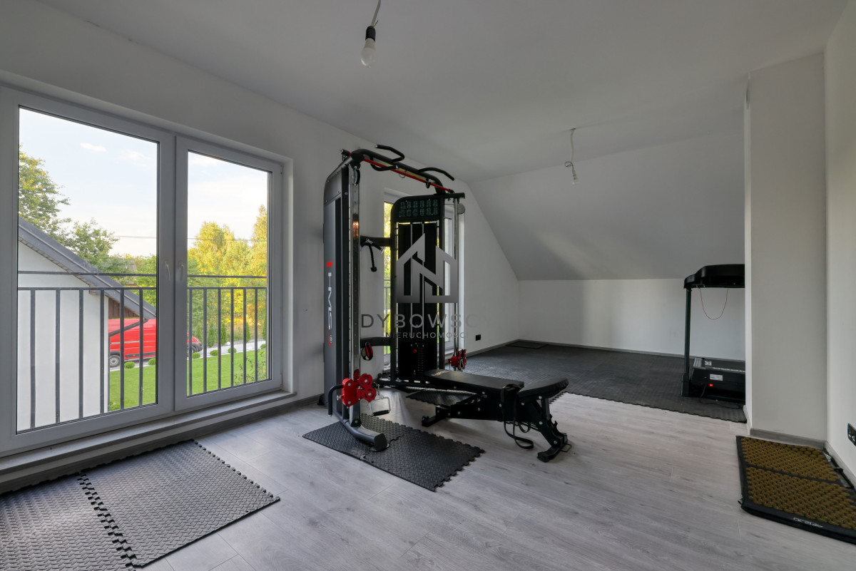 - duży salon (aktualnie zaadaptowany na siłownię)