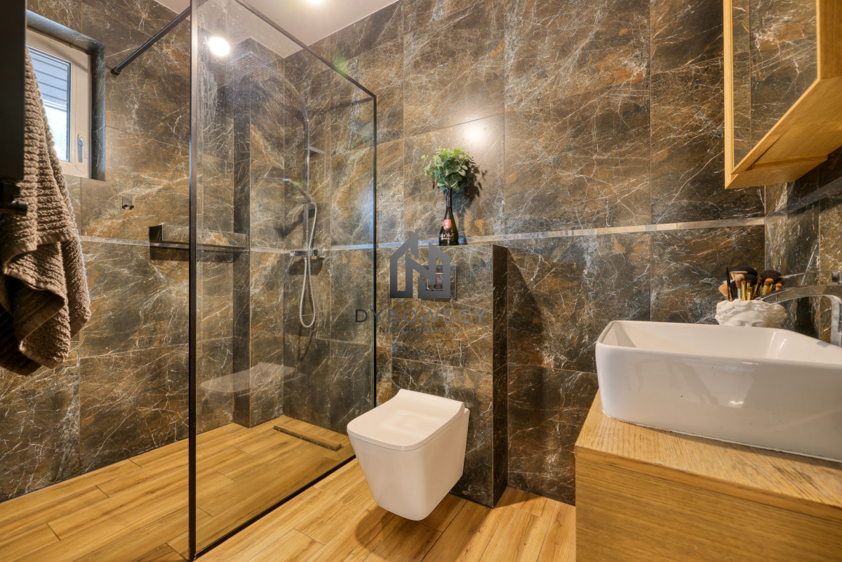 - łazienka z kabiną prysznicową (odpływ liniowy): 4,84 m²