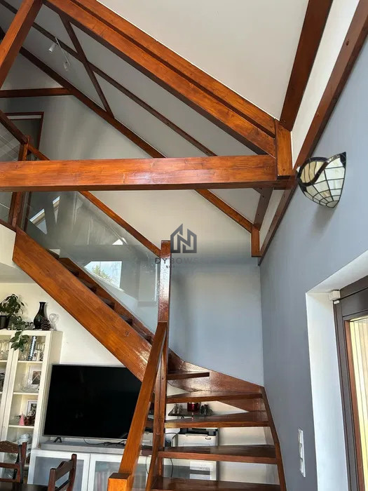 - Piętro/poddasze użytkowe: widna antresola, 3 pokoje, łazienka z prysznicem