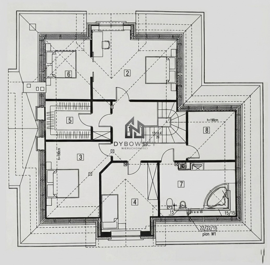 • Poddasze: ok. 60 m² powierzchni użytkowej - wysokie, bez znacznych skosów