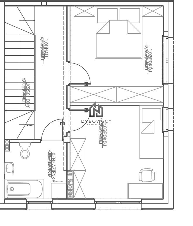 Poddasze użytkowe to prawdziwa perełka tej nieruchomości - imponujący pokój o powierzchni 27,5 m², który może pełnić funkcję głównej sypialni typu master suite, prywatnego gabinetu lub ekskluzywnej strefy relaksu. Poziom ten uzupełnia komfortowa łazienka oraz hall.